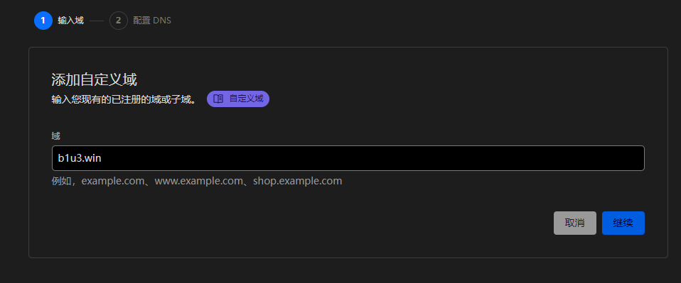 构建完成后,我们可以为项目指定自己的域名。此处点击“设置自定义域”。
