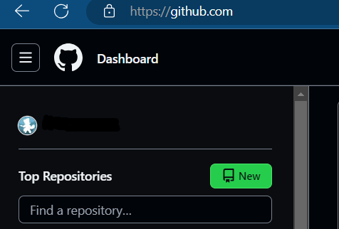 你需要在 GitHub 上创建一个空仓库,请在 GitHub 个人主页面板上的左上角找到下图的New按钮。