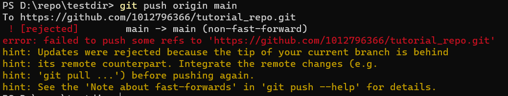 根据描述,Git 要求我们在下一次推送之前,先执行 git pull,然而,如果照做的话,就会提示