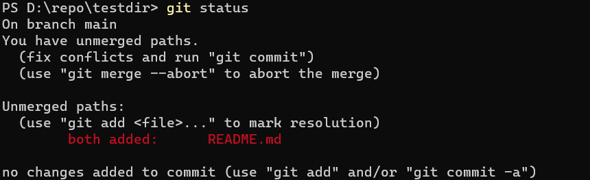 我们发现,README.md 是没有办法自动合并的文件,此时我们就需要自行决定该保留什么内容。