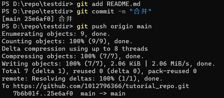一旦完成,我们就可以接着进行推送。在上一步中我们已经提交修改到本地仓库,只差推送,接着执行
