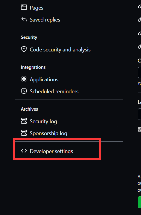 点开后在左边栏往下滑找到 Developer settings 并点击。