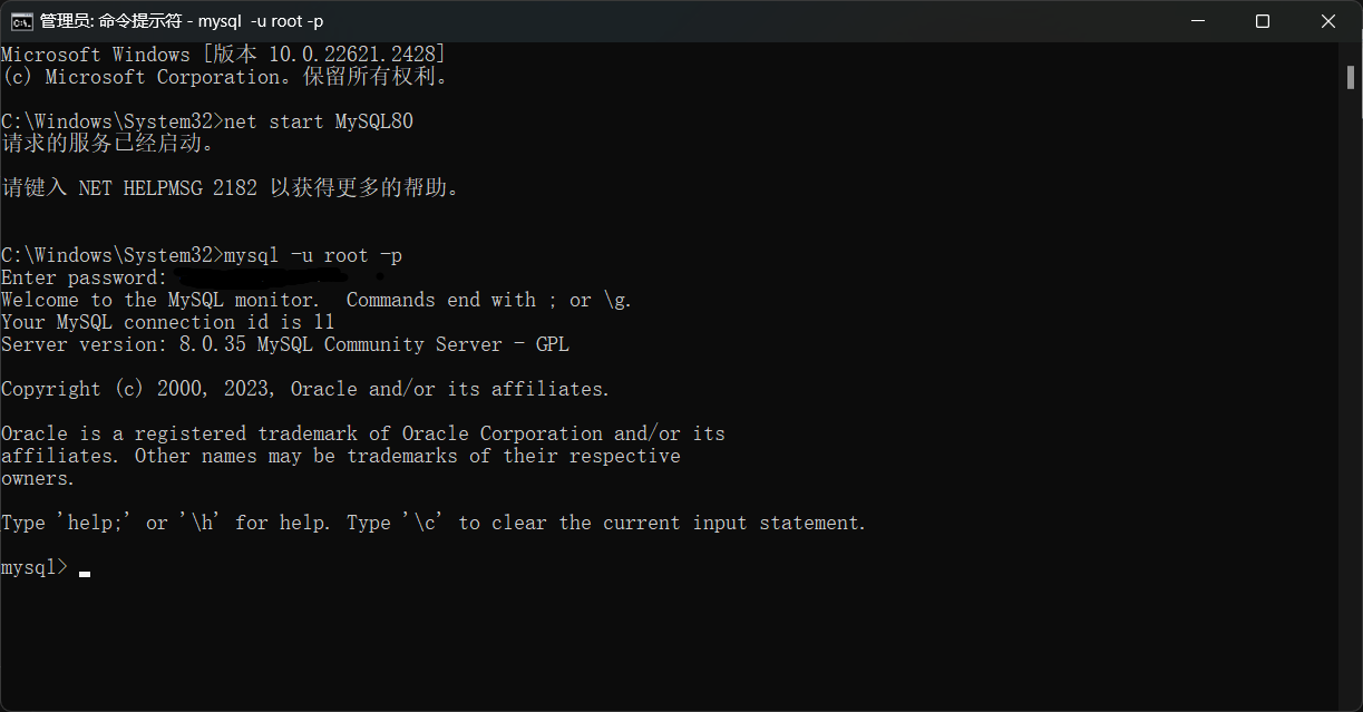 1 | net start mysql |