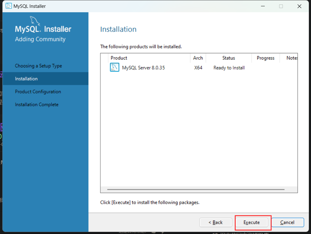 到下一步。点击 Execute 开始安装。