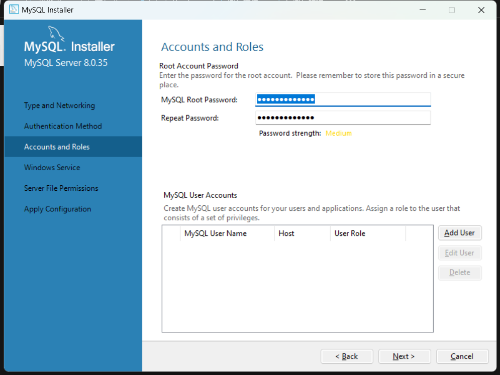 点击 Next 进入下一步。在 MySQL Root Password 中填入你的 ROOT 密码。